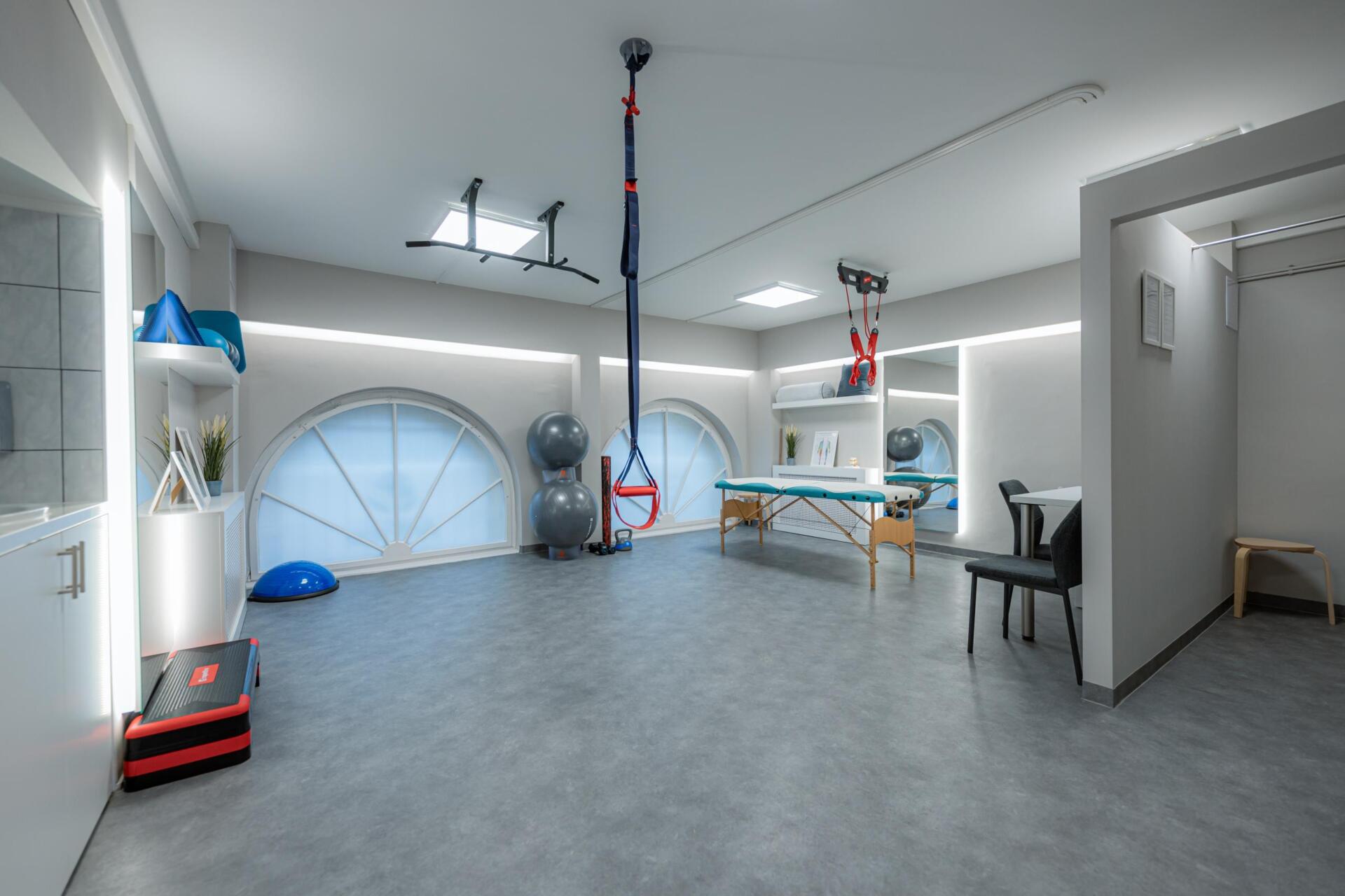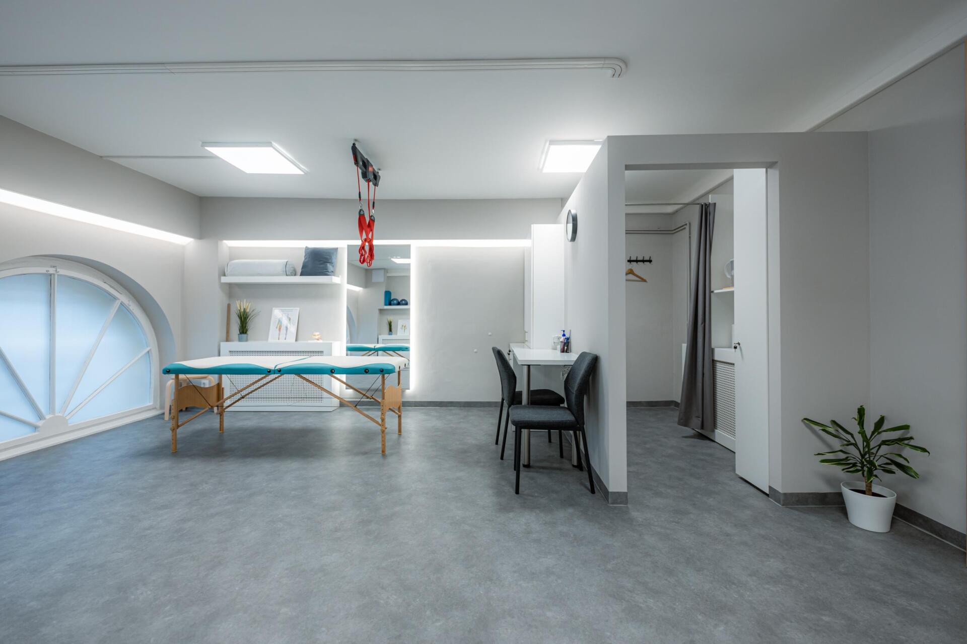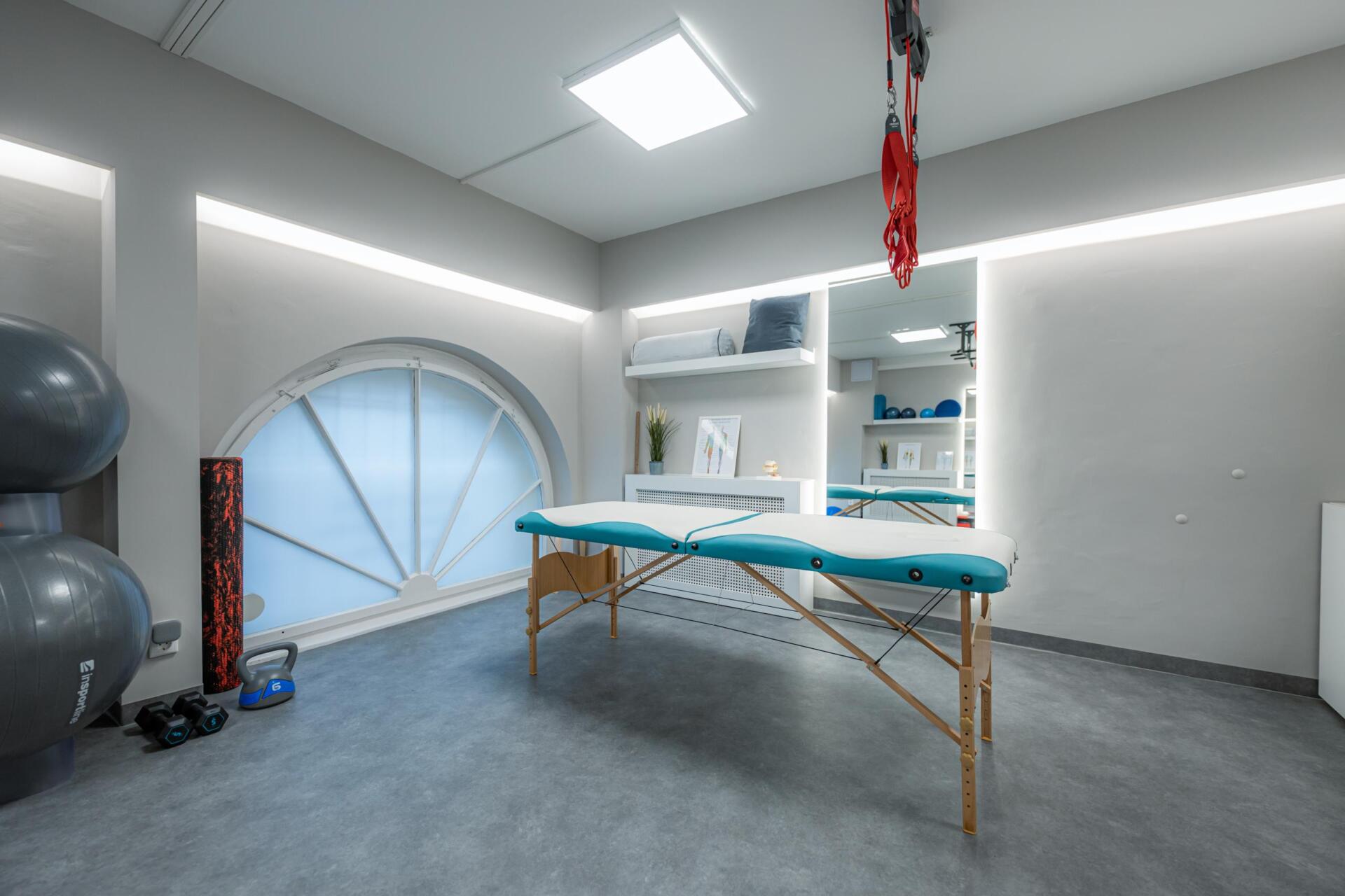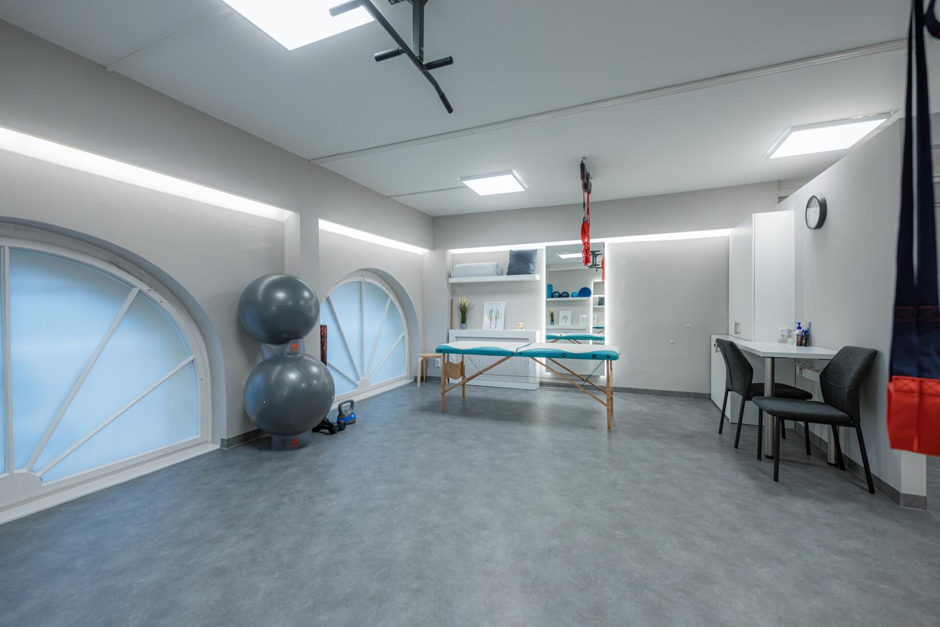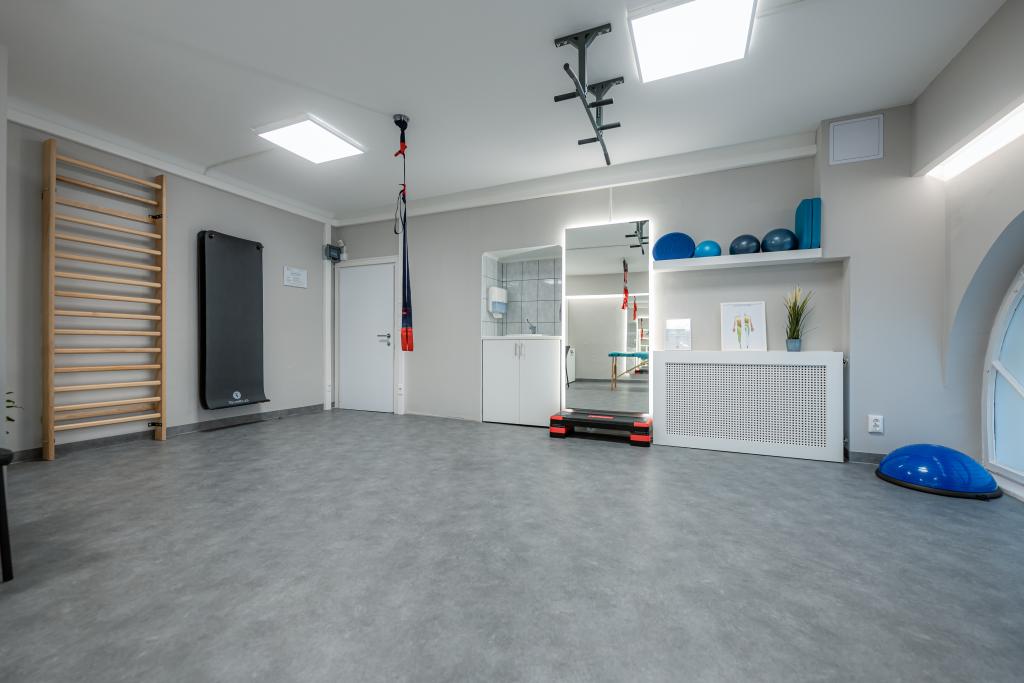 A helyiség átalakítása és kialakítása során fontos volt számunkra, hogy tágas, mégis otthonos, funkcionális, mégsem zsúfolt termet hozzunk létre. Célunk volt továbbá, hogy rendelőnkben és a logónkban visszaköszönjön a professzionális, modern, letisztult ízlésvilág. Eszközparkunkat úgy alakítottuk ki, hogy profilunknak megfelelően mind az alap gyógytornához, a manuálterápiához, a masszázshoz és a funkcionális edzéshez szükséges elemek megtalálhatóak legyenek benne.