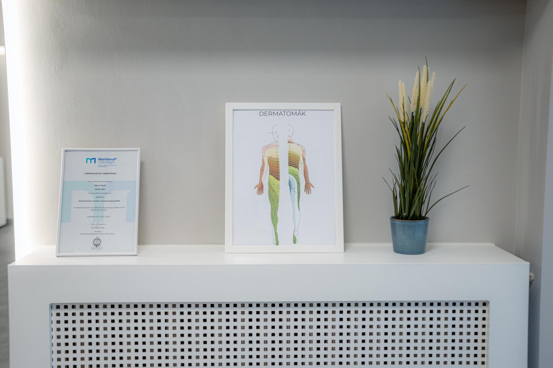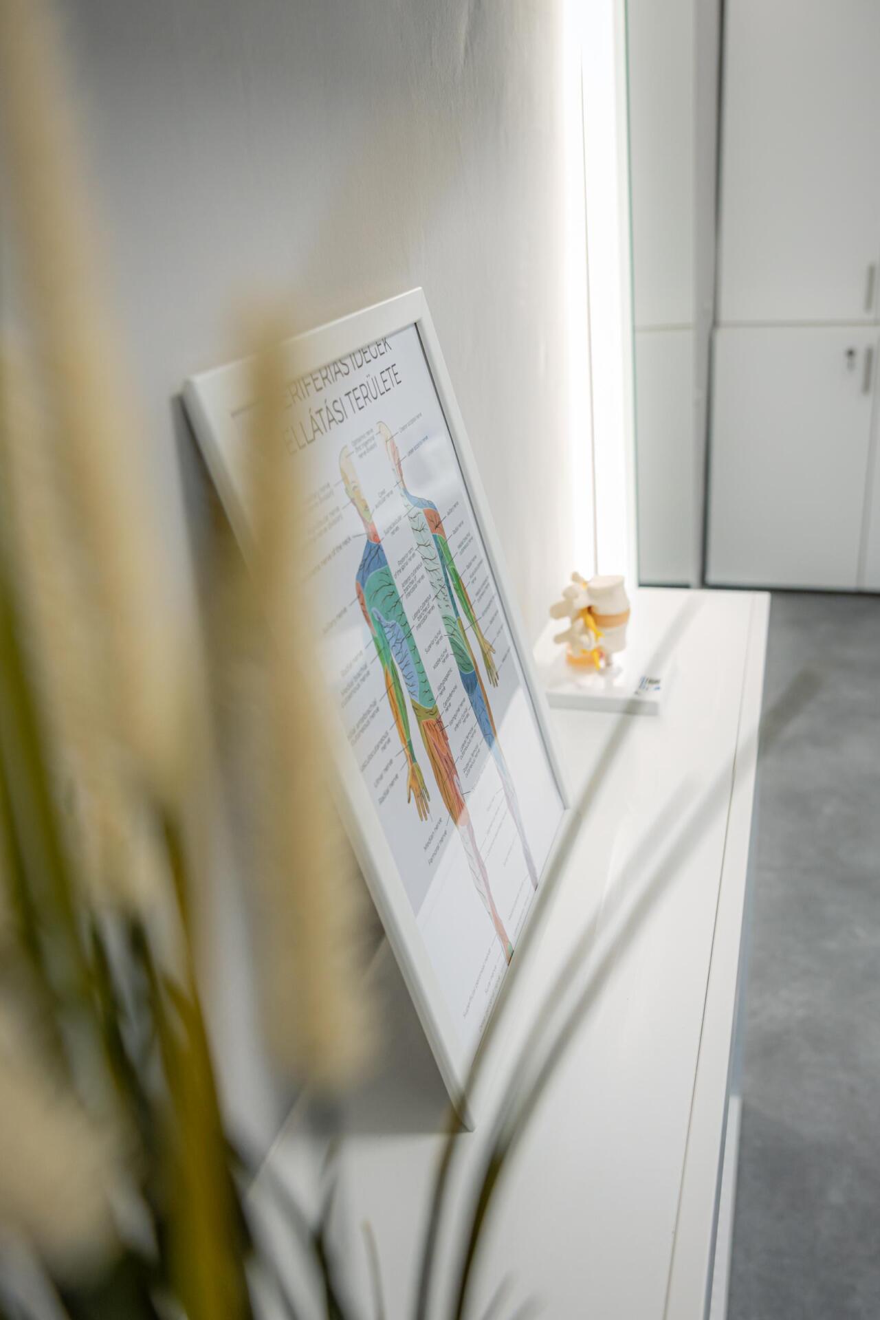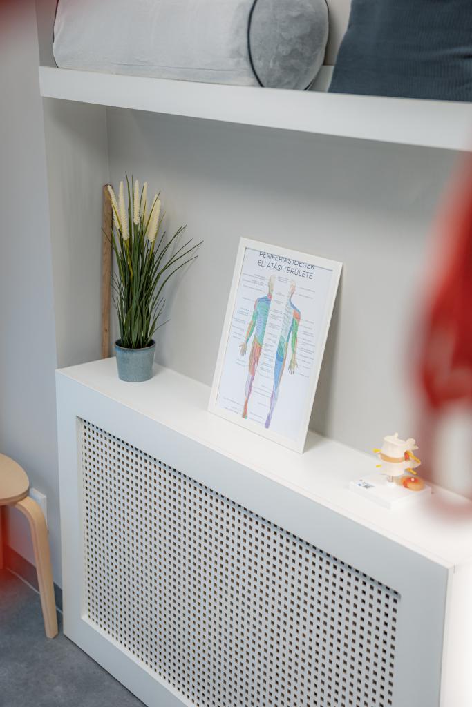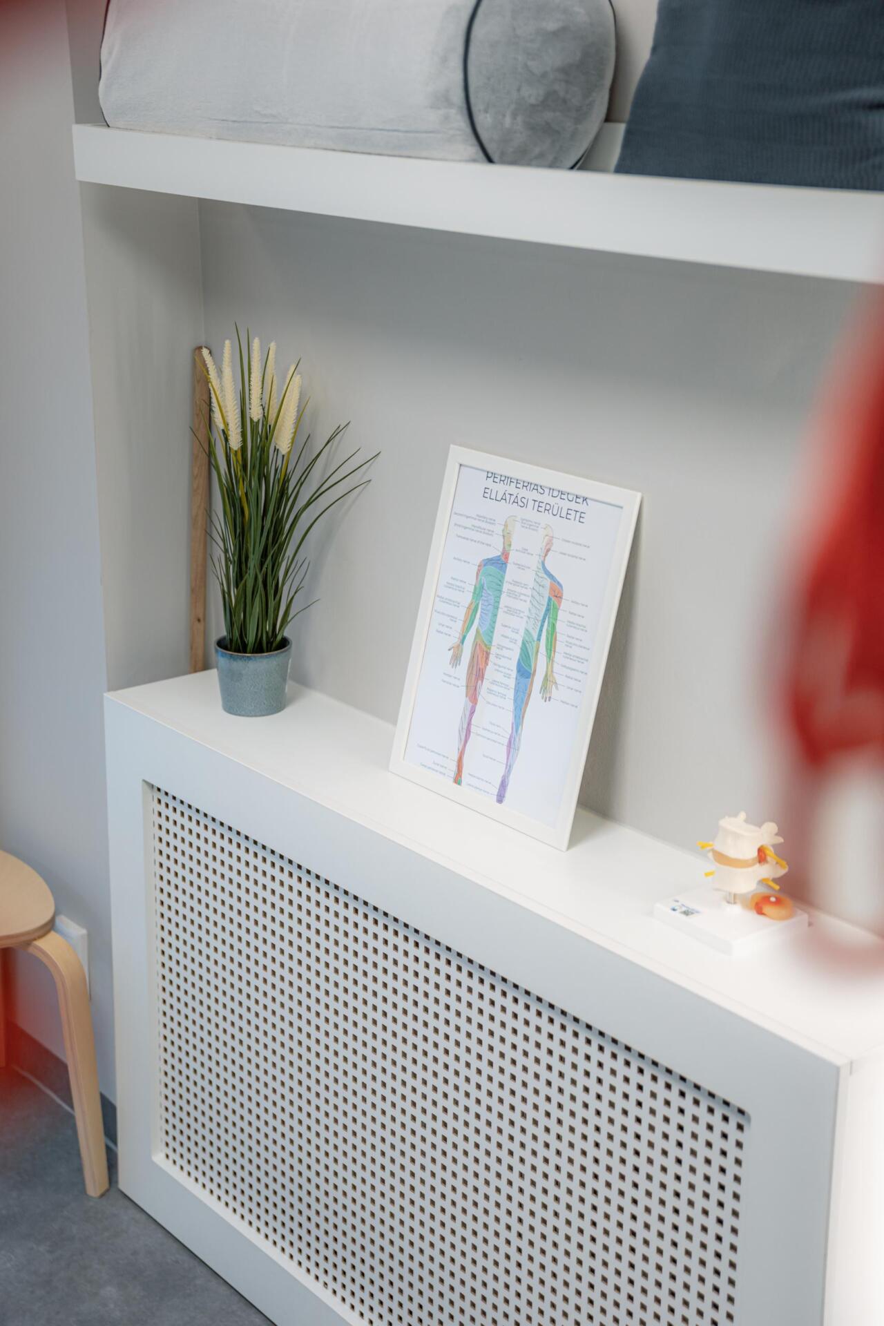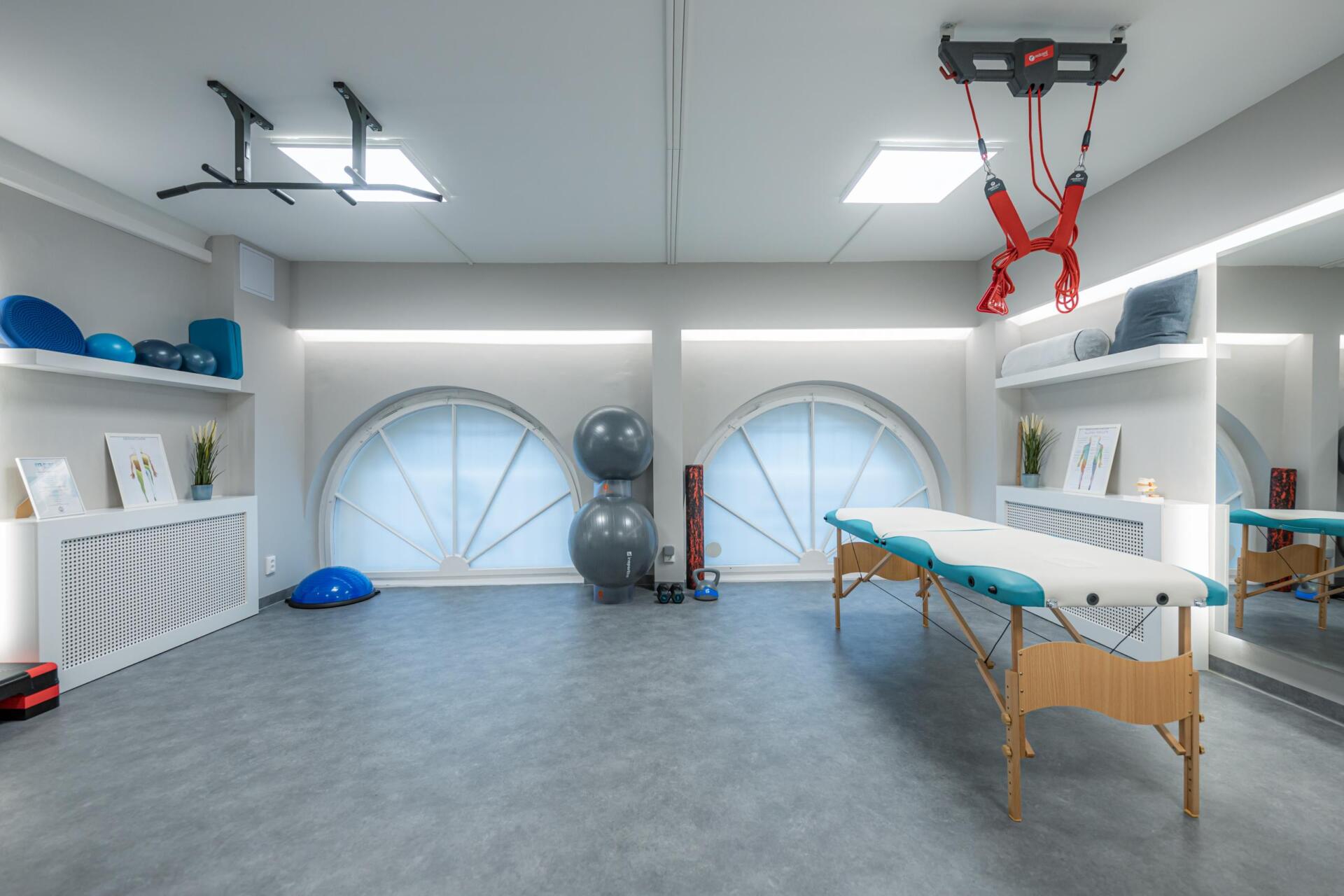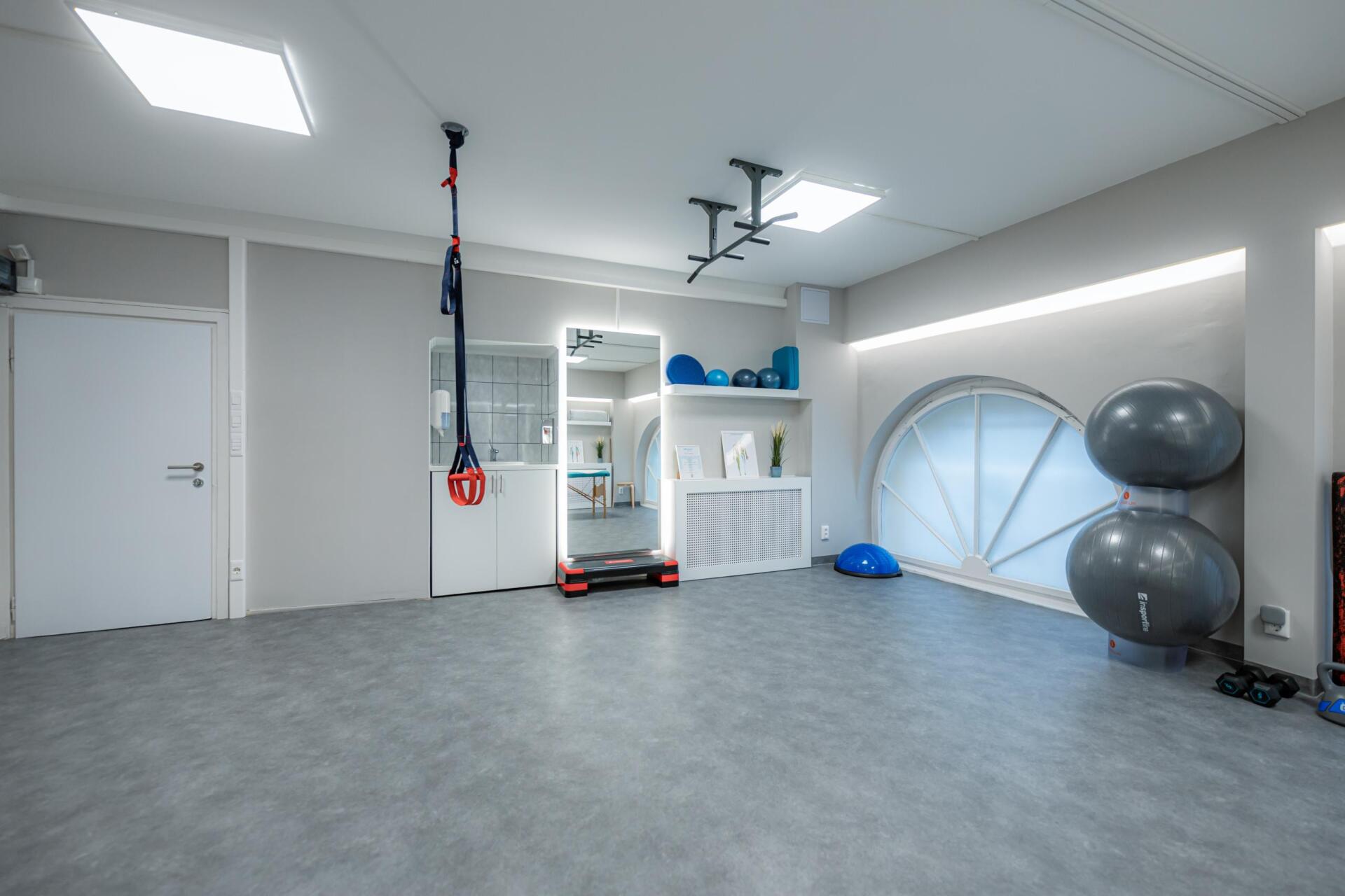 A helyiség átalakítása és kialakítása során fontos volt számunkra, hogy tágas, mégis otthonos, funkcionális, mégsem zsúfolt termet hozzunk létre. Célunk volt továbbá, hogy rendelőnkben és a logónkban visszaköszönjön a professzionális, modern, letisztult ízlésvilág. Eszközparkunkat úgy alakítottuk ki, hogy profilunknak megfelelően mind az alap gyógytornához, a manuálterápiához, a masszázshoz és a funkcionális edzéshez szükséges elemek megtalálhatóak legyenek benne.